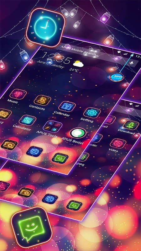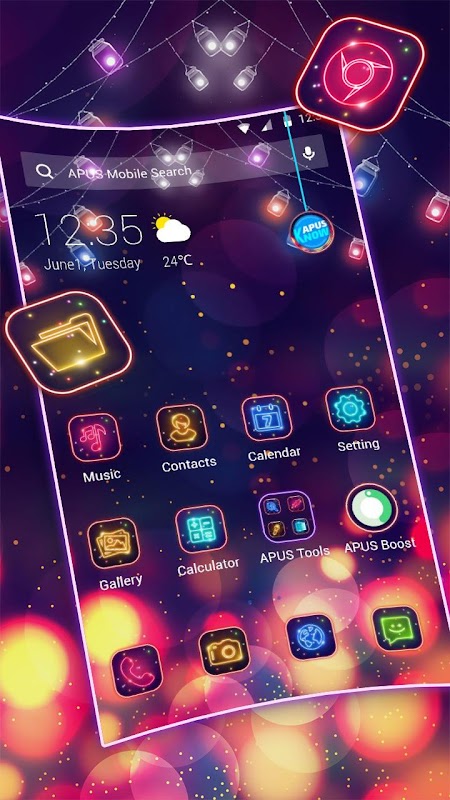 Installeer Color Phone Neon APUS Launcher Theme, maak je telefoon speciaal.