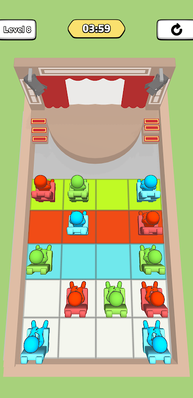 Duik in een levendige en boeiende puzzelervaring waarbij het jouw doel is om orde te scheppen in een wereld van kleurrijke chaos. In dit spel zijn verschillende stoelen willekeurig verspreid over het raster, elk met een aparte kleur. Jouw missie? Sleep elke stoel naar de bijbehorende kleurgecodeerde rastercel.