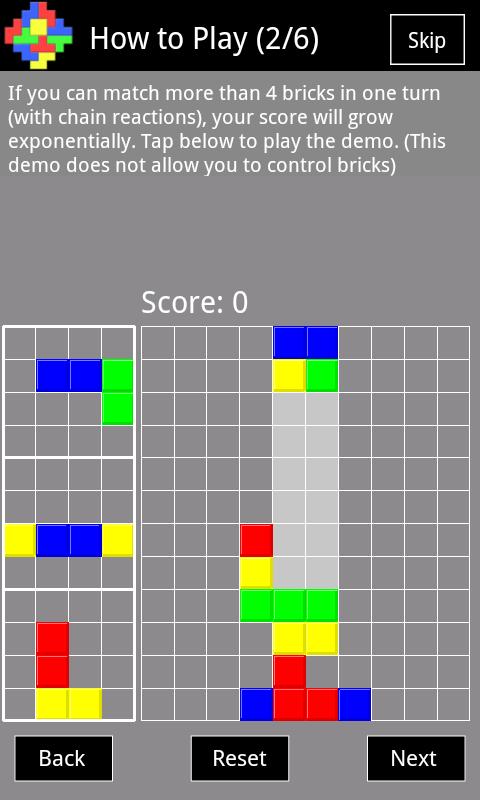 2. If you can match more than 4 blocks with chain reactions, the score will grow exponentially.
