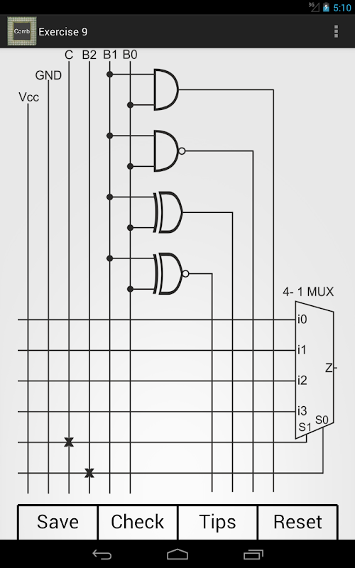 Combinational Circuits, is an educational application that offers a number of problems about electronic combinational circuits.