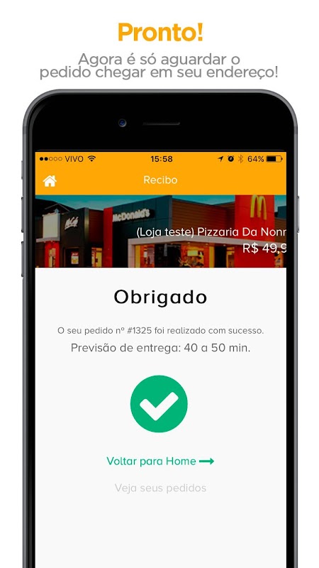 Nova tela de finalização do pedido com atualização de status em tempo real.