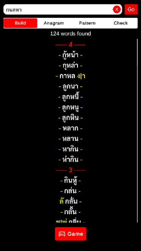 Los en bouw woorden van Thaise karakters. Speel een Thais kruiswoordraadselspel tegen een bot