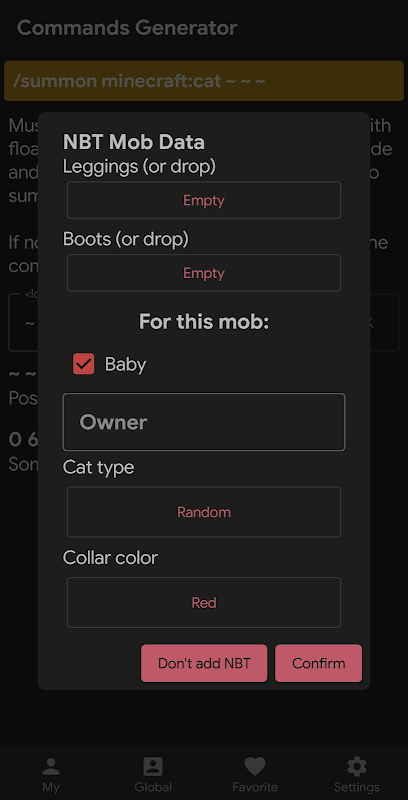 Met behulp van commando's kun je veel dingen bewerken. Maak een mob met speciale parameters, bewerk de beschrijving, namen of eigenschappen van items en verander zelfs de regels van het spel. Deze app helpt je precies dat te doen!