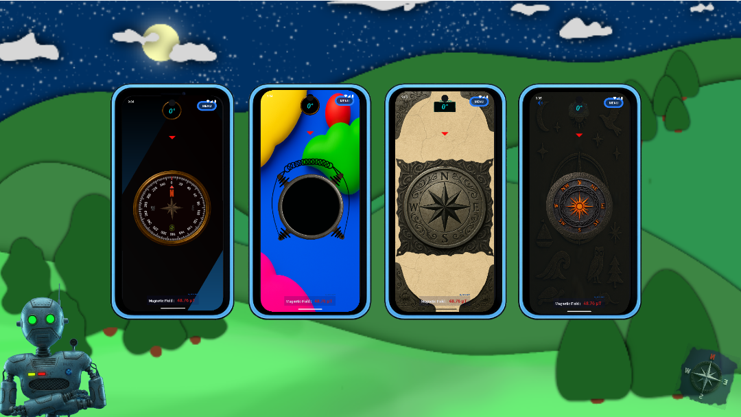 - **Nauwkeurige aanwijzingen:** Gebruikt de ingebouwde sensor van uw telefoon om het magnetische veld van de aarde te meten.