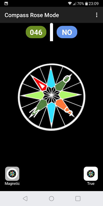 In Compass Rose Mode the 16 point Compass Rose moves like a gimballed compass on a ship and the compass also shows a numeric bearing for the top of the compass.