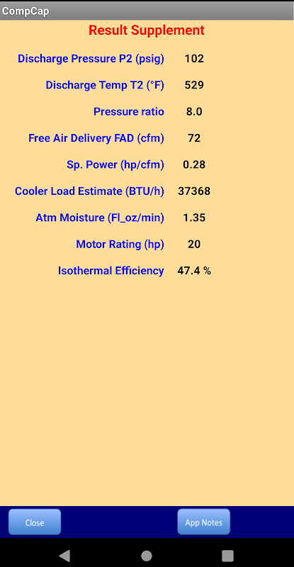 CompCap (Compressor Capacity) App is vooral ontwikkeld voor het schatten verschillende key performance indexen in eentraps Industrial Air compressoren. Het helpt ook bij snel lopen tests FAD en lekkages schatten in de perslucht systemen om de potentiële energiebesparing beoordelen.