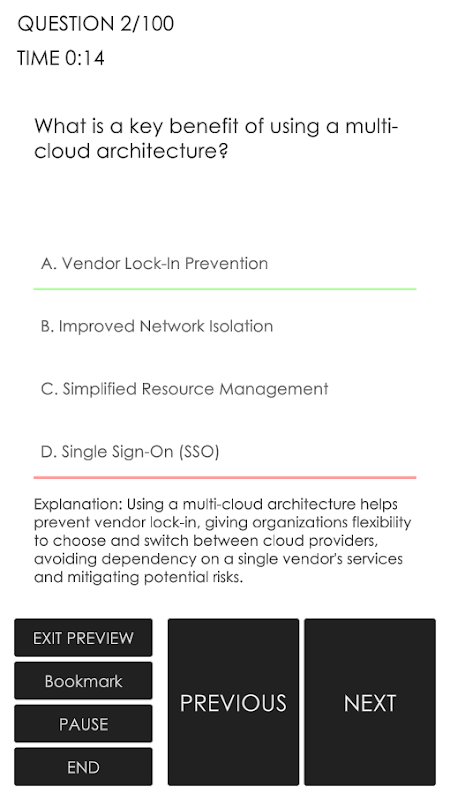 De simulatormodus is gemaakt om het daadwerkelijke CompTIA Cloud+-examenformaat te repliceren, zodat u voorafgaand aan uw daadwerkelijke examen een proefexamen kunt doorlopen.