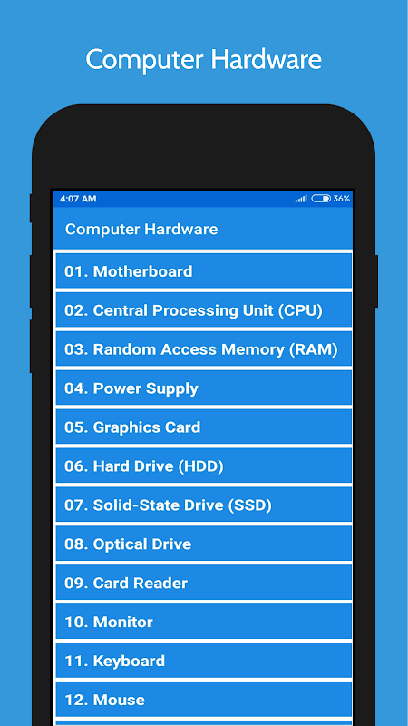 Deze app is handig voor degenen die beginnen met het leren van de basis van de computer, zoals wat is software, wat is hardware, enz.