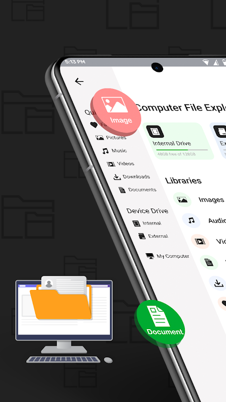 Computer File Explorer is een krachtige tool voor bestandsbeheer die is ontworpen om u te helpen uw bestanden eenvoudig te beheren op zowel uw Android-apparaten als computers. Met deze app kunt u eenvoudig uw foto's, muziek, video's, documenten en andere bestanden openen en beheren.
