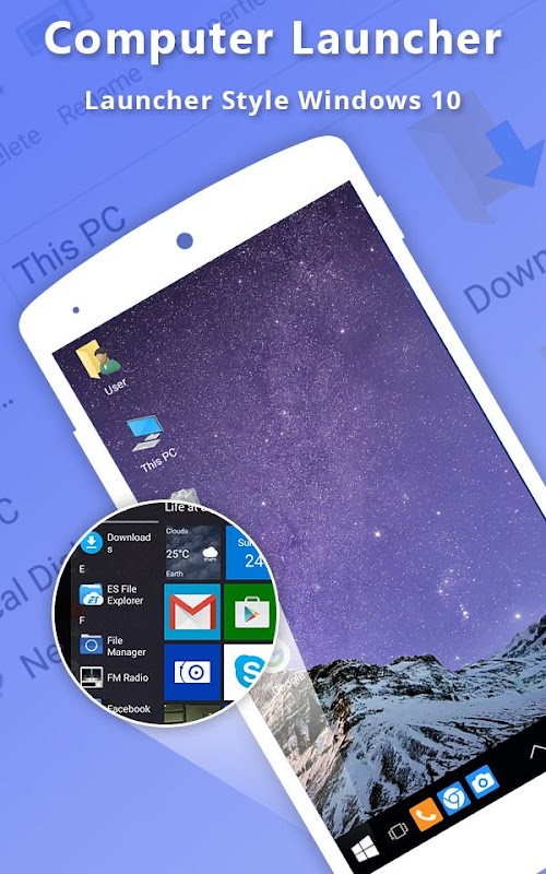 No wait now. windows 10 launcher is here for you. windows 10 launcher Customize your phone with unique look and feel with the fast, clean and energy efficient Launcher. windows 8 computer launcher Surprise your friends with new look of your windows 8 computer launcher Android and also share it with your loved ones.