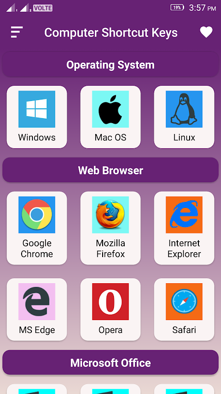 Computer sneltoetsen App is ontwikkeld, waar je toetsenbord sneltoetsen kunt leren, zodat je je werk snelheid kunt verhogen en je tijd kunt besparen. U kunt sneltoetsen op het toetsenbord gebruiken in plaats van de muis. Belangrijkste doel voor de computergebruikers om het gebruik van de muis te vermijden.