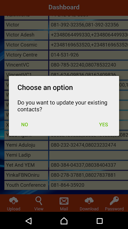U kunt uw contactpersonen naar het e-mailadres dat u gebruikt om de app te registreren sturen.