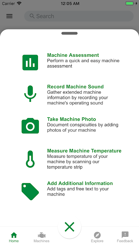 Neem machinegeluiden op met uw smartphone, beantwoord enkele aanvullende vragen, druk op een knop en de gebruiker krijgt een eerste beoordeling van de toestand van zijn machine - snel, gemakkelijk en ongeacht de fabrikant. Het kan echt niet eenvoudiger.