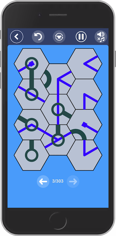 Connect the pattern inside the hexagon block cells to solve the puzzles. Tap any of the Hexa's to rotate them until the pattern, line, or pipe inside the Hexa block matches and connects each end to the pattern, line, or pipe in the Hexa's connected or next to it. No loose ends are allowed, the entire puzzle must match and be completely connected After each round, the following puzzle will grow with more Hexa's which will increase the difficulty of game.