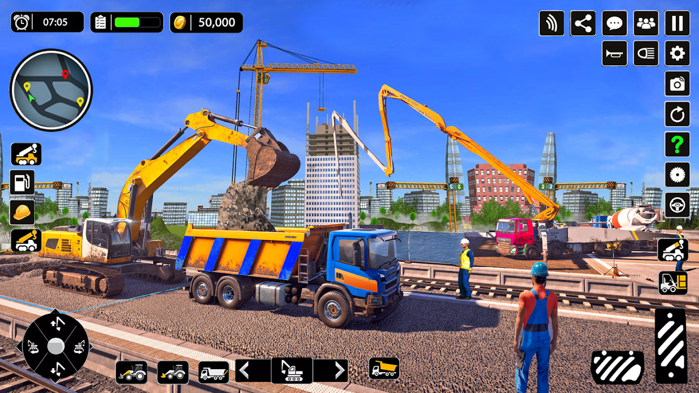 Trek je veiligheidsgordel aan en rijd met zware bouwvoorwerpen door de straten van de stad met vrachtwagens en aanhangers, graafmachines, vorkheftrucks, asfalteermachines, JCB-machines en meer! Start je eigen bouwbedrijf en krijg een megaproject van de stad in Global Construction Game 2023. Veel plezier in de beste bouwsimulator 2023: Duty to Craft Game 3D door zware machines te besturen om materiaal van de ene site naar de andere te verplaatsen. Er zijn zoveel missies zoals frames op de vrachtwagen plaatsen met behulp van een statische kraan, een aanhangwagen naar het bouwhoofdkwartier rijden, stenen op de weg verplaatsen met behulp van een bulldozer enz.