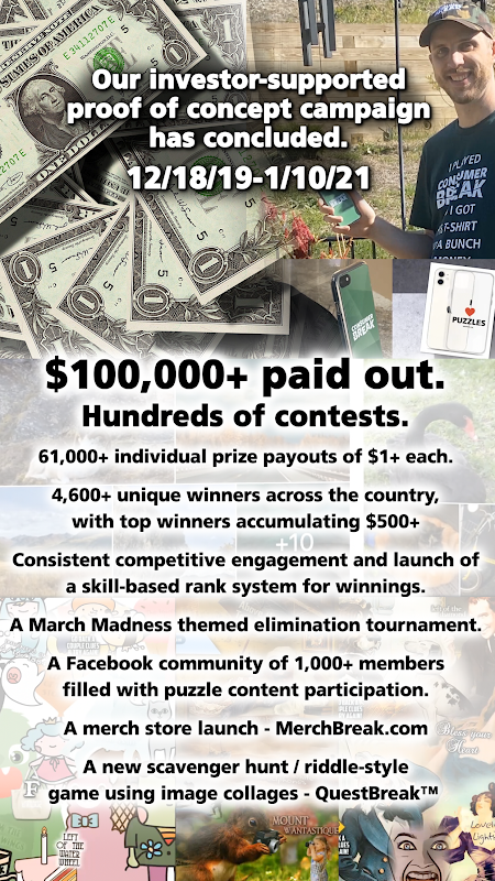 - Introducing the worldwide release of the ConsumerBreak "Arcade" section, opening the app to all countries! The Arcade feed of games includes puzzles just for fun or where you can play-to-earn NFTs, coupons & other rewards from our collaboration partners just for solving the puzzle. The "Contests" section that includes prizes to top player scores or giveaways is still U.S. only at this time, which will open to more countries in the future.