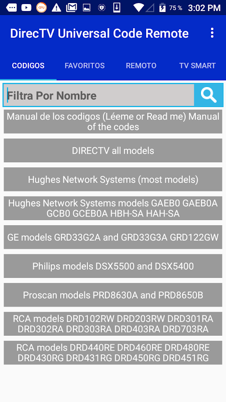 Codes remote controller of your Universal DirecTv this app allows you to quickly select thousands of codes tv manufacturers so you can set your control or (Control) for television. Controlles universal code DirecTV universal code controlles for DirecTV