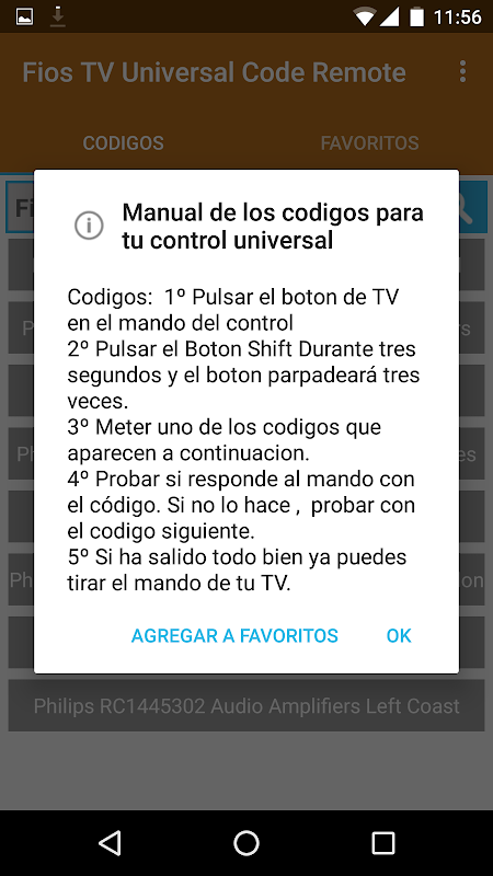 Codes remote controller of your Fios Universal TV this app allows you to quickly select thousands of codes tv manufacturers so you can set your control or (Control) for television. Controlles universal code of Fios TV, controlles universal code for FiOS TV