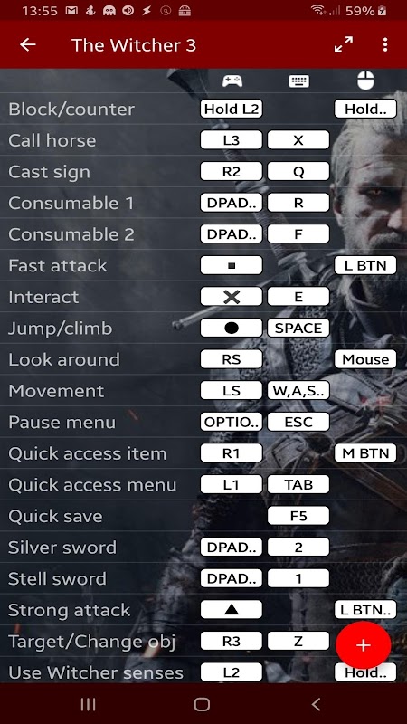 3) Wanneer u het spel op uw pc of console speelt, opent u het bijbehorende profiel in de app, plaatst u uw telefoon verticaal of horizontaal voor u en gebruikt u deze als referentietabel terwijl u speelt. Gebruik de modus "Volledig beeld" om meer schermruimte te krijgen.