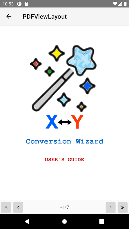 Conversiewizard is eenvoudig te gebruiken. het bevat een gebruikershandleiding in pdf-formaat, geschikt om in de app te bekijken of te delen op een externe printer.
