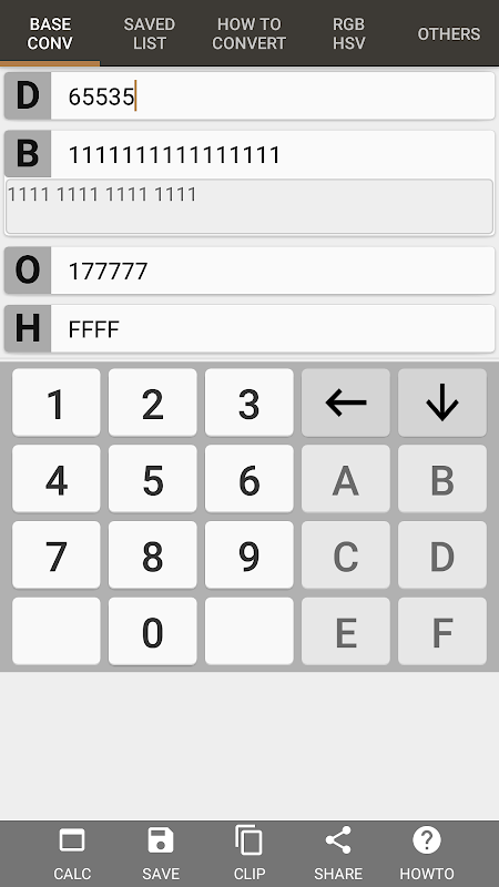 - Storing converted results to the clipboard or 'SAVED LIST'