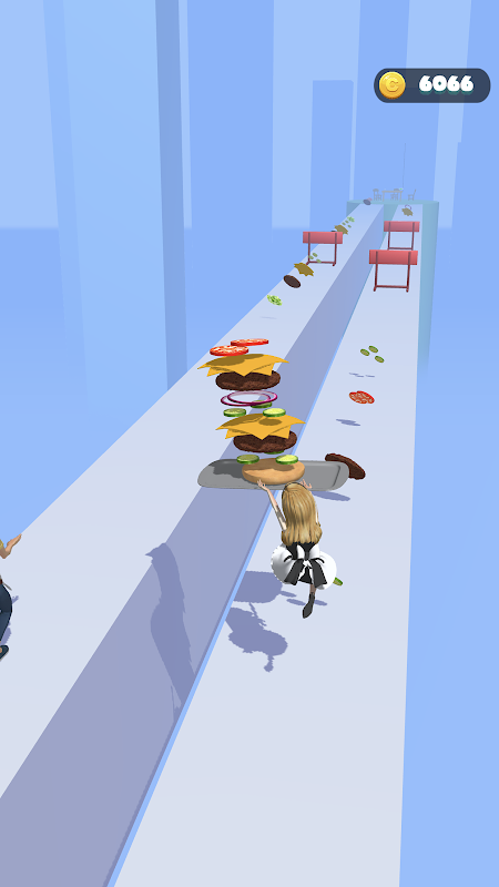 Control the burger between the two chefs, making sure the burger is in your hand when picking up food, and making sure it's not in your hand when crossing a hurdle.Let's make a super big burger