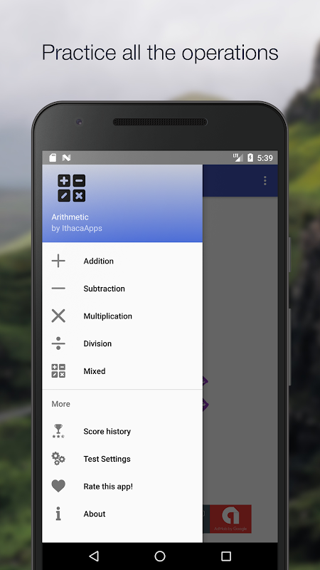 Be the master of math and arithmetic: practice arithmetic operations choosing from three types of tests.