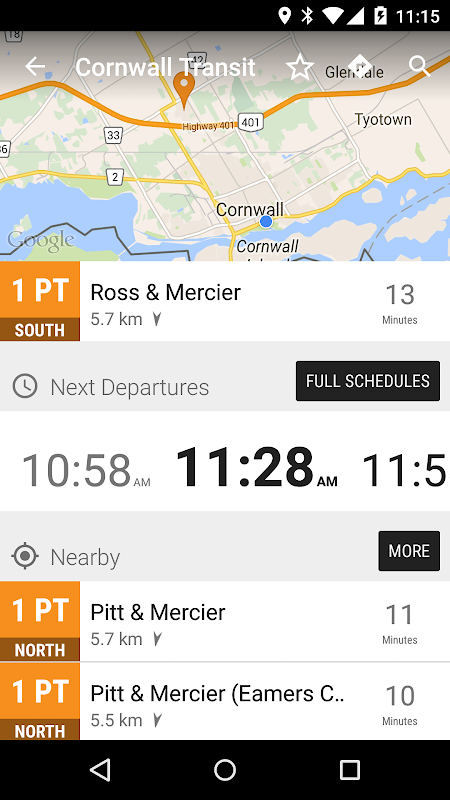 Deze app voegt informatie over Cornwall Transit-bussen toe aan MonTransit.