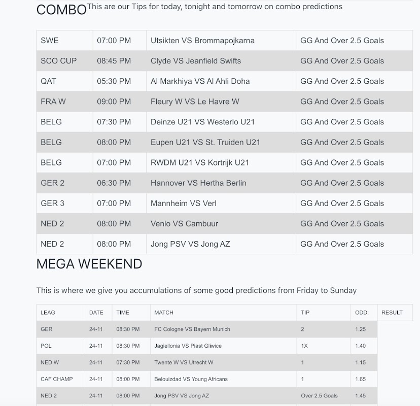 Smart Correct Score Fixed Matches geeft je een nieuw perspectief op voetbal. Je vindt er dagelijks goed onderbouwde scoretips, wedstrijdanalyses en waardevolle inzichten, gecreëerd met behulp van data- en prestatieanalyses.