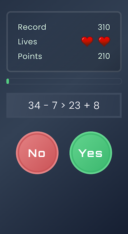 Jouw taak? Bepaal of de vergelijking juist of onjuist is en tik vervolgens op JA of NEE.