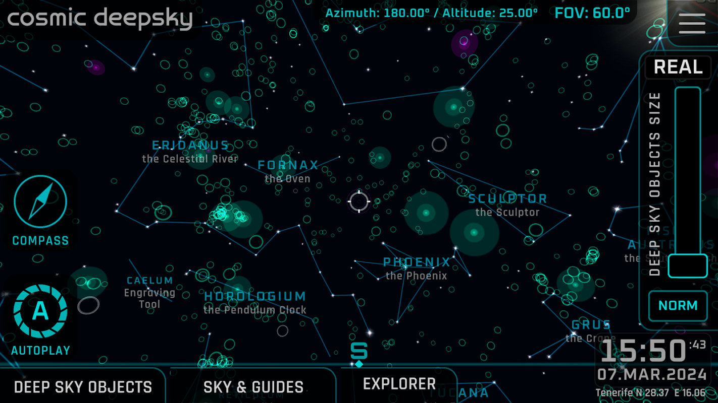 Verken deepsky-objecten: nevels, sterrenstelsels, bolvormige sterrenhopen vanaf uw locatie