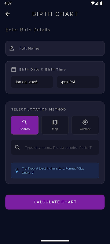 Voer geboortegegevens in