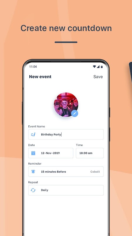 Click on CREATE NEW EVENT option and fill the details like icon, name, date & time, reminder, sound, etc. and click on the SAVE option. Your created event will be shown in Upcoming Event List, in this manner you can track countdown for all your events.