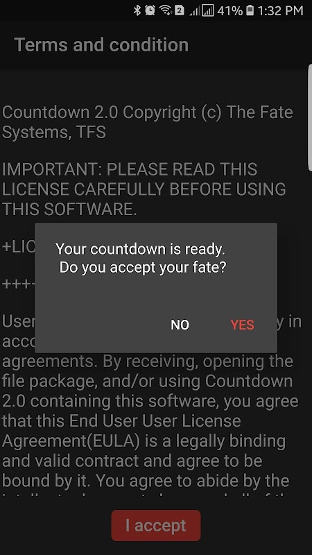 Disclaimer: deze Countdown 2.0-app is alleen voor entertainmentdoeleinden, neem de resultaten niet te serieus.