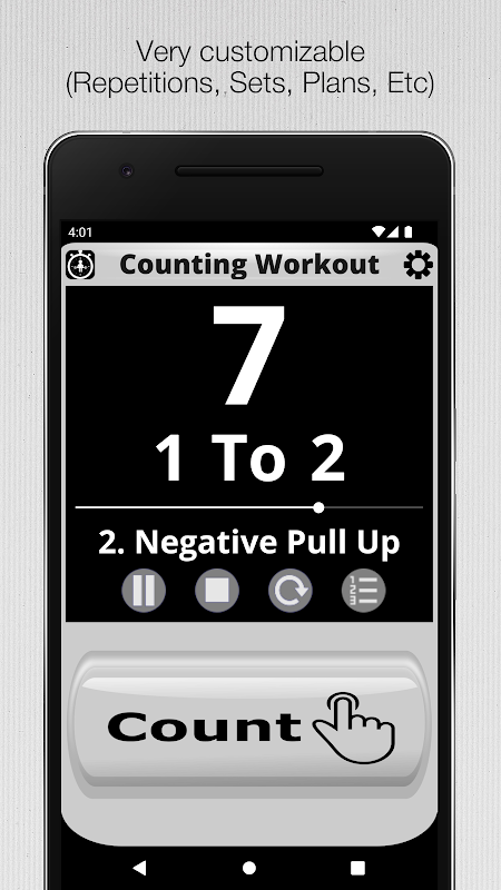 Als je lui bent om te tellen wanneer je aan het trainen bent, kan deze app je helpen te tellen. Je concentreert je gewoon op je training en deze app telt voor je wat je maar wilt. U hoeft alleen herhalingen en sets in te stellen en vervolgens op afspelen te klikken om te beginnen met tellen.