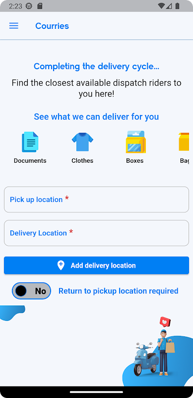 Courries is een app die wordt gebruikt om rijders/agenten te begroeten/boeken