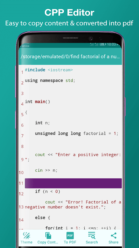 CPP-bestandsopener of CPP-bestandslezer is een zeer handig hulpmiddel om elk soort cpp-bestanden efficiënt te laden en om te zetten naar pdf. CPP-bestandslezer geeft je veel geweldige functies, zoals het kopiëren en delen van de code, het wijzigen van het editorthema, het afdrukken van pdf-bestanden enz.