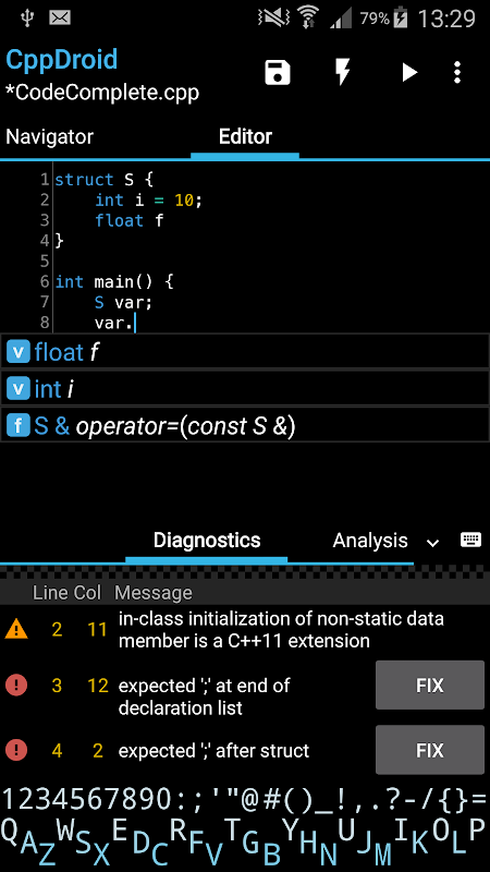 CppDroid is eenvoudig C / C ++ IDE gericht op het leren van programmeertalen en bibliotheken.