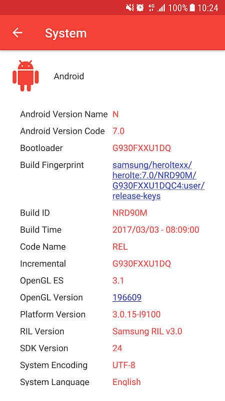 - System giving you all information about your system like OS version, build ID, build fingerprint or still bootloader value