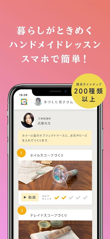 CRAFTING is een online service voor handgemaakte lessen die uw wensen ondersteunt. U kunt overal handgemaakt genieten terwijl u video's bekijkt met de app. Een line-up van meer dan 100 cursussen in alle 8 genres. Elke maand worden er nieuwe cursussen één voor één gelanceerd!