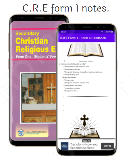 C.R.E: Form 1 - 4 Handbook bevat CRE form 1 - form 4 Klb KCSE gestandaardiseerde notities. De applicatie assembleert CRE-aantekeningen van formulier 1 - formulier 4. De applicatie scherpt studenten aan met de relevante inhoud in christelijk religieus onderwijs. De applicatie is ingesteld om de studenten voor te bereiden op het beantwoorden van vragen die zullen voorkomen in het nationale KCSE-examen. De applicatie bevat de volgende onderwerpen: