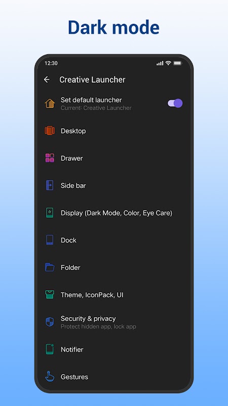 + Creative Launcher ondersteunt meer dan 1000 coole thema's en achtergronden