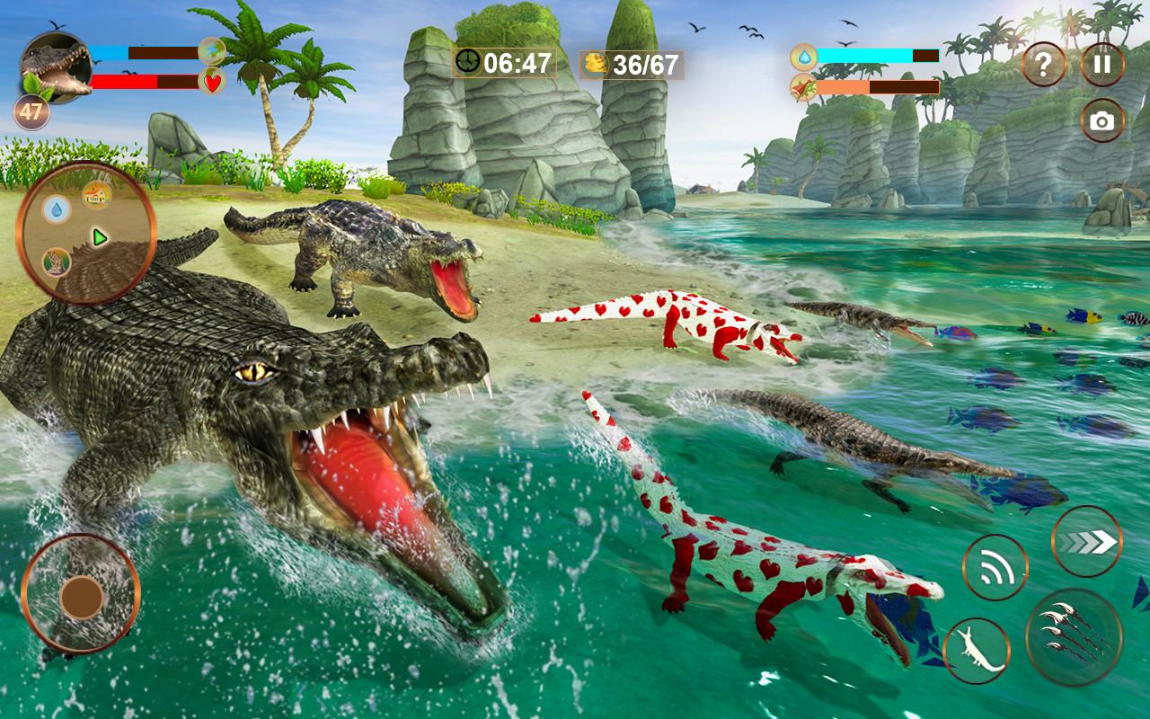 Krokodillentanden zijn te scherp. Jaag om ze te voeren en geniet van realistisch krokodillen eten. Avontuur van krokodilleneieren broeden de eieren van krokodillen uit. Upgrade je alligator- of jachtplaatsen in het eten van krokodillen. Verken 3D-realistisch bos en strand met krokodillenwaterspellen. Voed je gezin op, jaag en overleef in de wildernis van jungle en zeestrand.