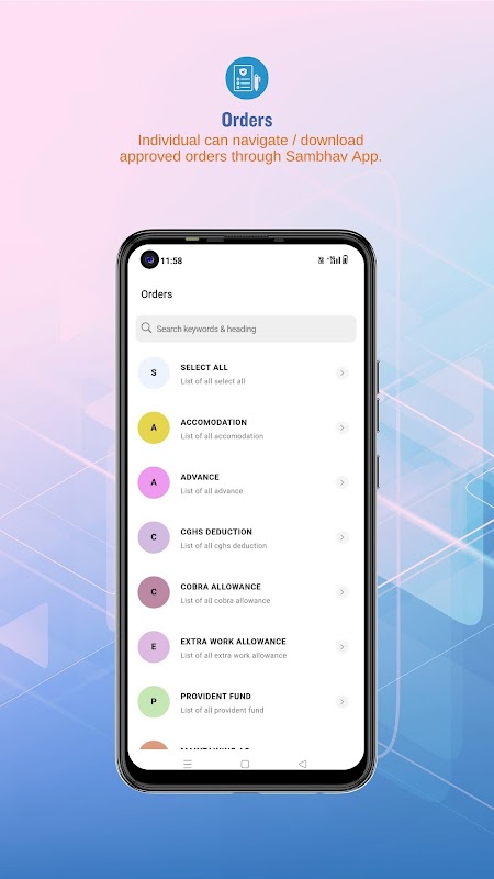 Sambhav is ontworpen, ontwikkeld en gehost als een interface tussen CRPF ERP (SELO) en het mobiele apparaat van de gebruikers. Via deze applicatie blijft CRPF digitaal verbonden met hun medewerkers, veteranen en NOK's. Gebruikers met de hulp van Sambhav kunnen na registratie en verificatie de volgende activiteiten uitvoeren:
