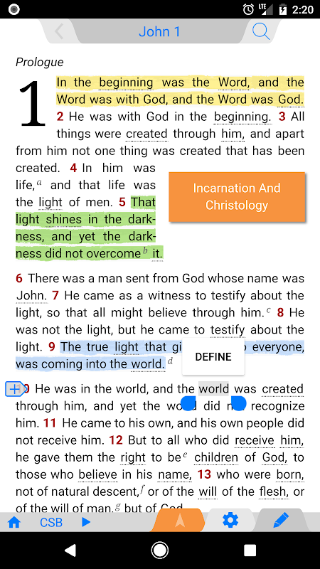 De CSB Study App bevat de zeer leesbare, zeer betrouwbare tekst van de Christian Standard Bible® (CSB). De CSB blijft zo letterlijk mogelijk in de oorspronkelijke betekenis van de Bijbel zonder in te boeten aan duidelijkheid, waardoor het gemakkelijker wordt om deel te nemen aan de levensveranderende boodschap van de Schrift en deze met anderen te delen. Meer informatie over de CSB op CSBible.com.