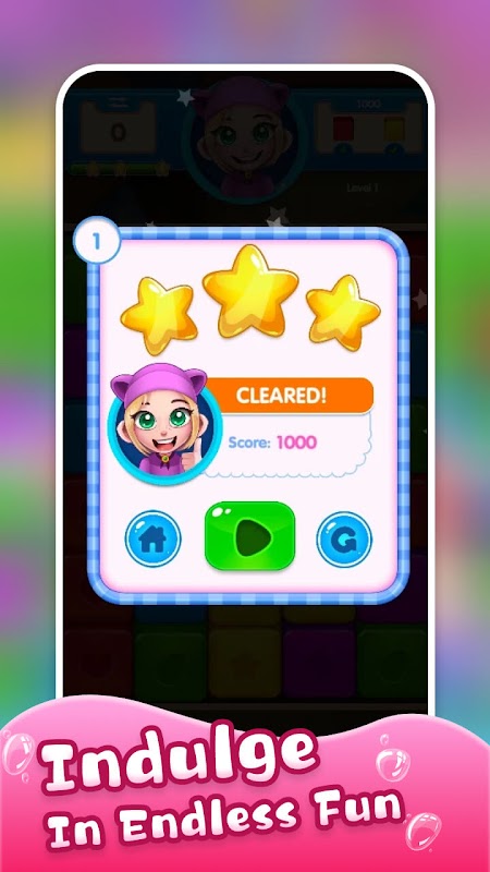 - Boeiende gameplay: tik op groepen van drie of meer bijpassende kubussen om ze te verpletteren en het bord leeg te maken. Hoe meer blokjes je in één keer verplettert, hoe hoger je score!