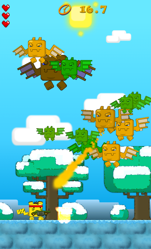 All the zombies on the planet Cubic Rubic are destroyed. But the war against the dragons continues. During the war with the zombies, thanks to daily training, Cubemon learned to handle weapons, mastered the techniques of mma and kung fu. Cubemon became fast as Bruce Lee, invisible as a ninja and undefeated as Chuck Norris. Because of the long war with the zombies on the planet Cubic Rubic has more dragons Cubedrags. Dragons became stronger and more cunning. To destroy them and prevent the apocalypse, the Cubemon begins to hunt. You need to help Cubemon to become a sniper. You need to shoot the weapons in the dragons. Cubedrags will quickly fly and attack Cubemon with fire. Cubemon in return will attack them with missiles. Help Cubemon hit the target and destroy all the dragons. You have to become a defender of the planet Cubic Rubic and prevent the apocalypse.