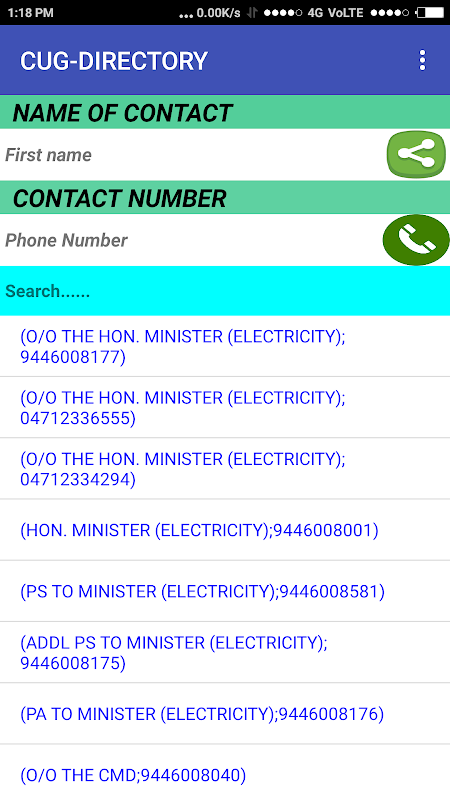 Kerala State Electricity Board, CUG Directory Contacten als in CUG
