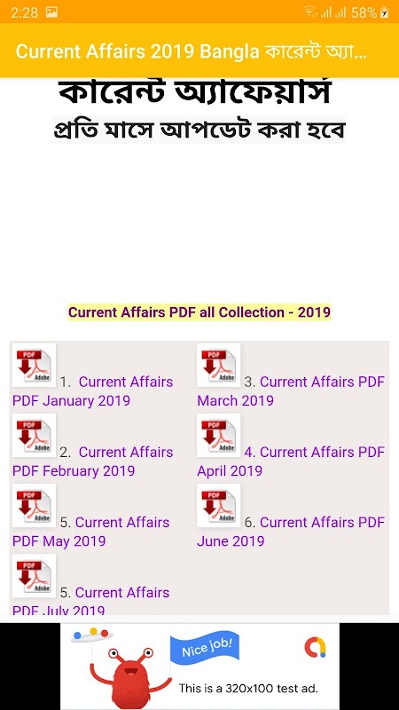 It’s not only job question, But also helpful for SSC, HSC, University Admission Test and 7 college admission test. This app will always helps any candidates of any level. We will uploaded Every month Current Affairs (PDF) file.