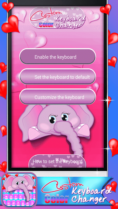 ❃ Don’t miss the opportunity to customize your own keyboard to your taste and native language. Choose a Spanish keyboard decorated with cute love hearts or a German keyboard in warm colors. Once you “change keyboard” background you’ll realize that you should have done that earlier because keyboard symbols and text fonts look so much better when painted in all rainbow colors. Download ❃ Custom Keyboard Color Changer ❃ and you'll be proud to have the best “virtual keyboard” for girls on the market. Explore our other free apps and games and continue using our free “keyboard for Android”.